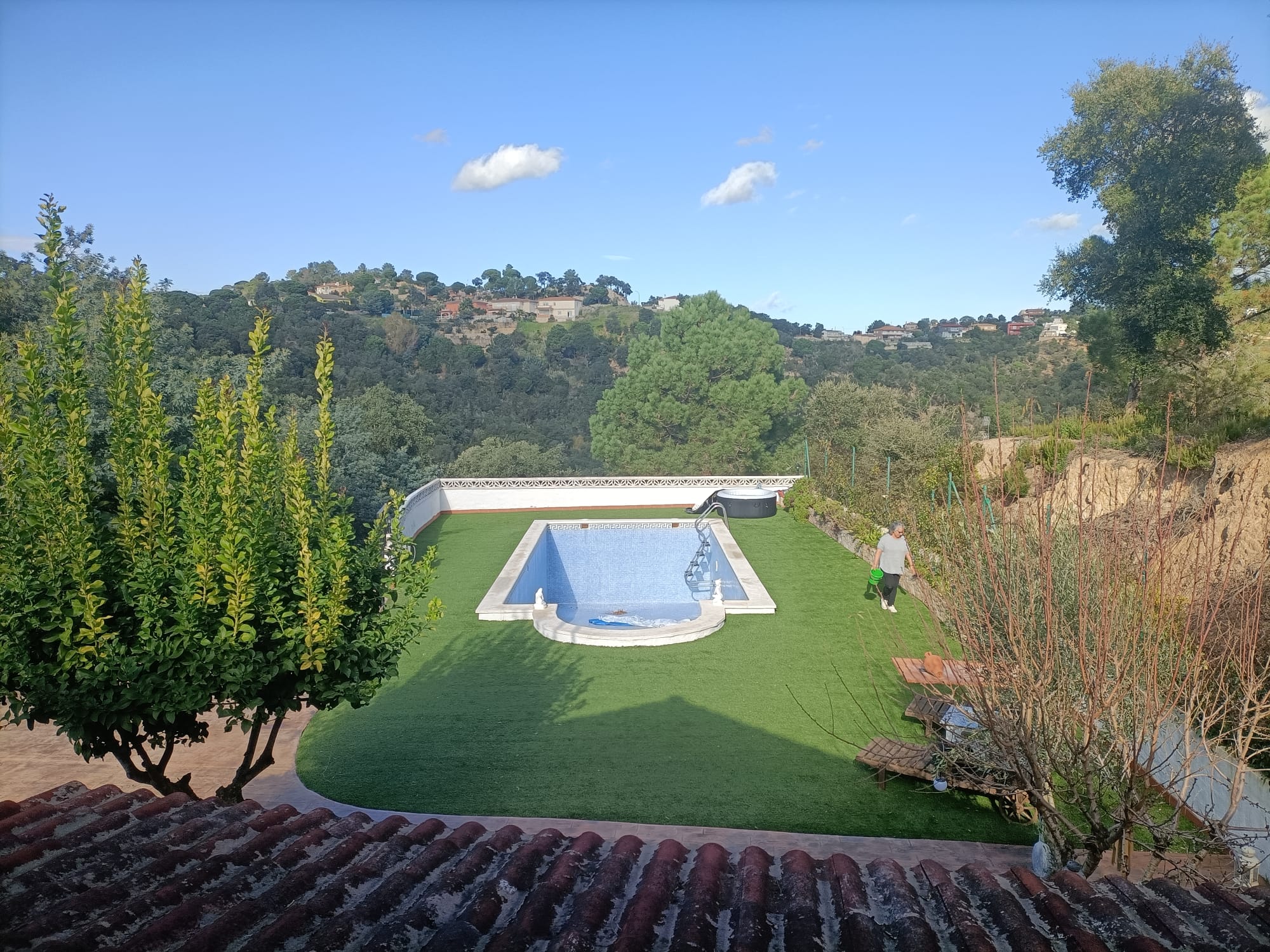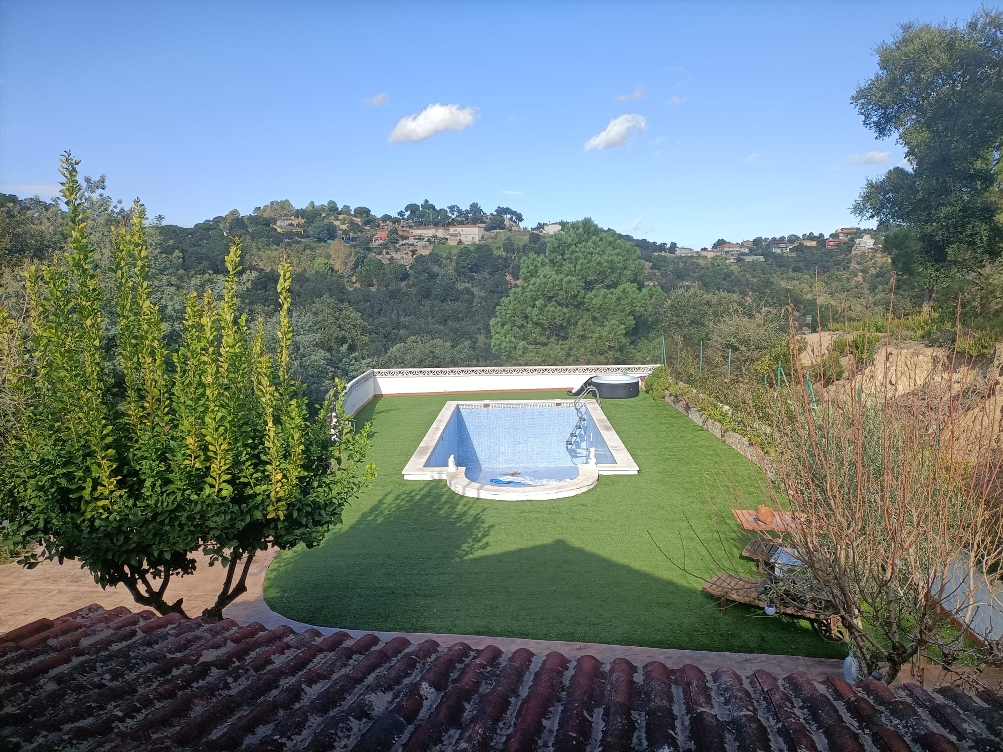 En la planta baja, disfruta de un amplio porche, un salón-comedor luminoso con cocina abierta, una habitación doble y un baño completo. La primera planta alberga tres habitaciones dobles, todas equipadas con bomba de calor y frío para tu comodidad durante todo el año. El jardín plano es un oasis privado con una impresionante piscina de 15×5 metros, ideal para relajarse o disfrutar con amigos y familia.